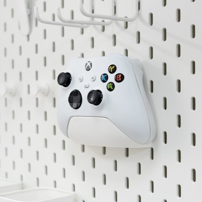 Organize your gaming setup with this pegboard controller holder. Durable, space-saving design perfect for Xbox, PlayStation, and other game controllers
