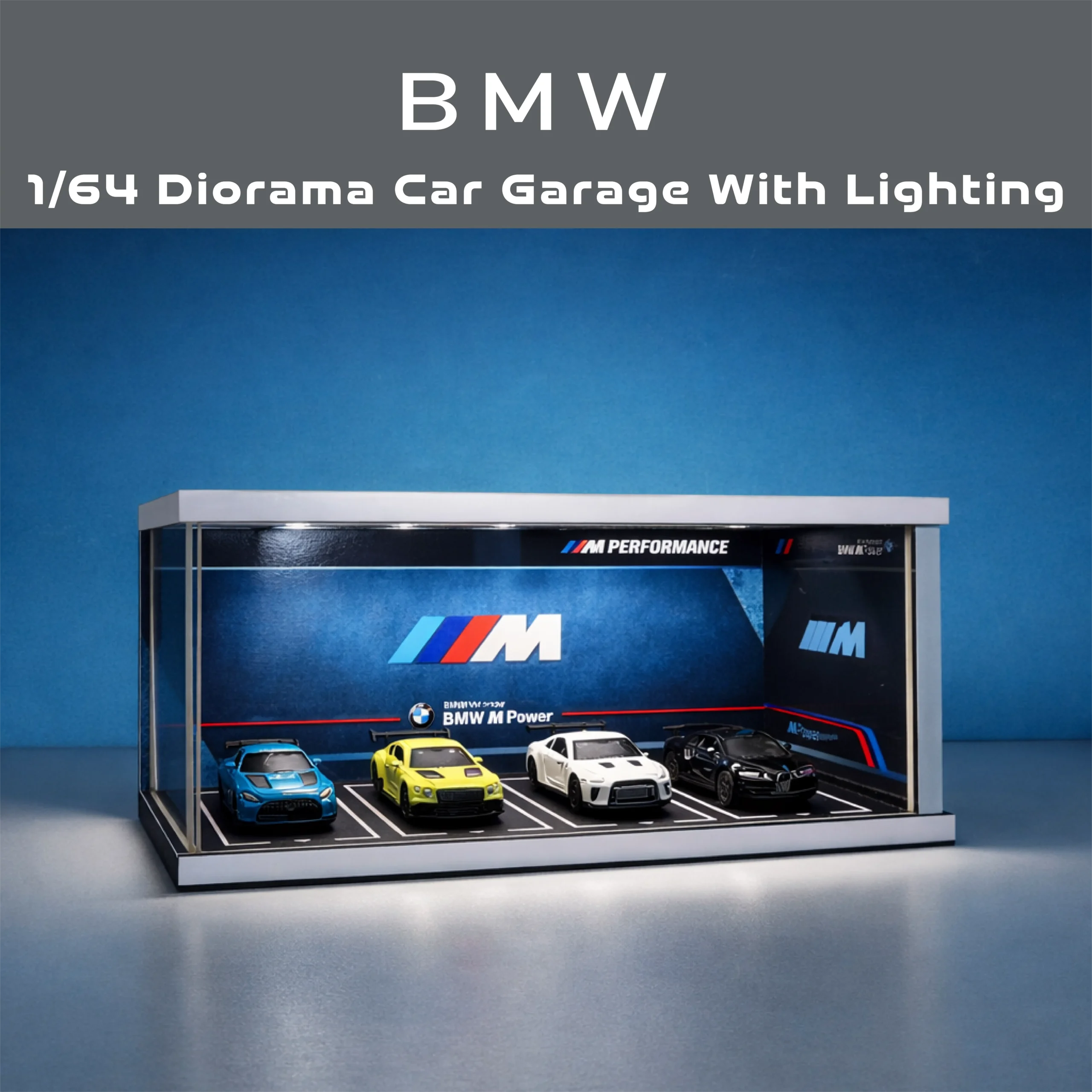 BMW Diorama Car Garage – Premium Display Setup for Diecast With Tri-Color Lighting