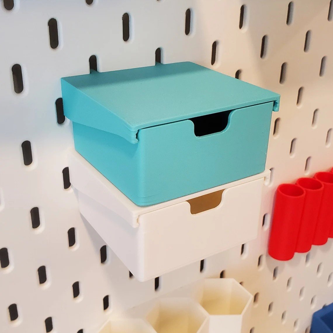 Perfect for storing stationery, cables, small tools, accessories, or craft items. The premium quality material and precise 3D printed finish ensure durability along with a clean and modern look for your pegboard setup.