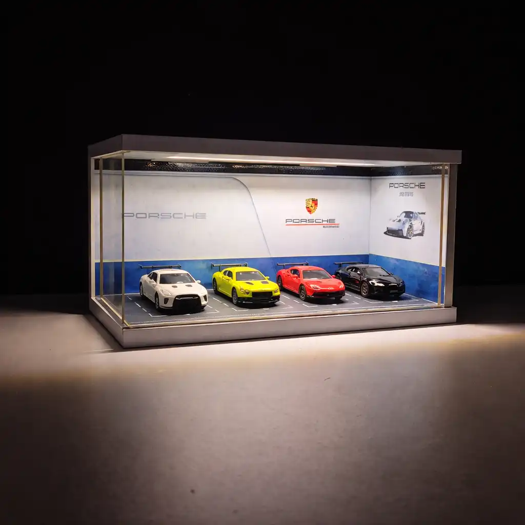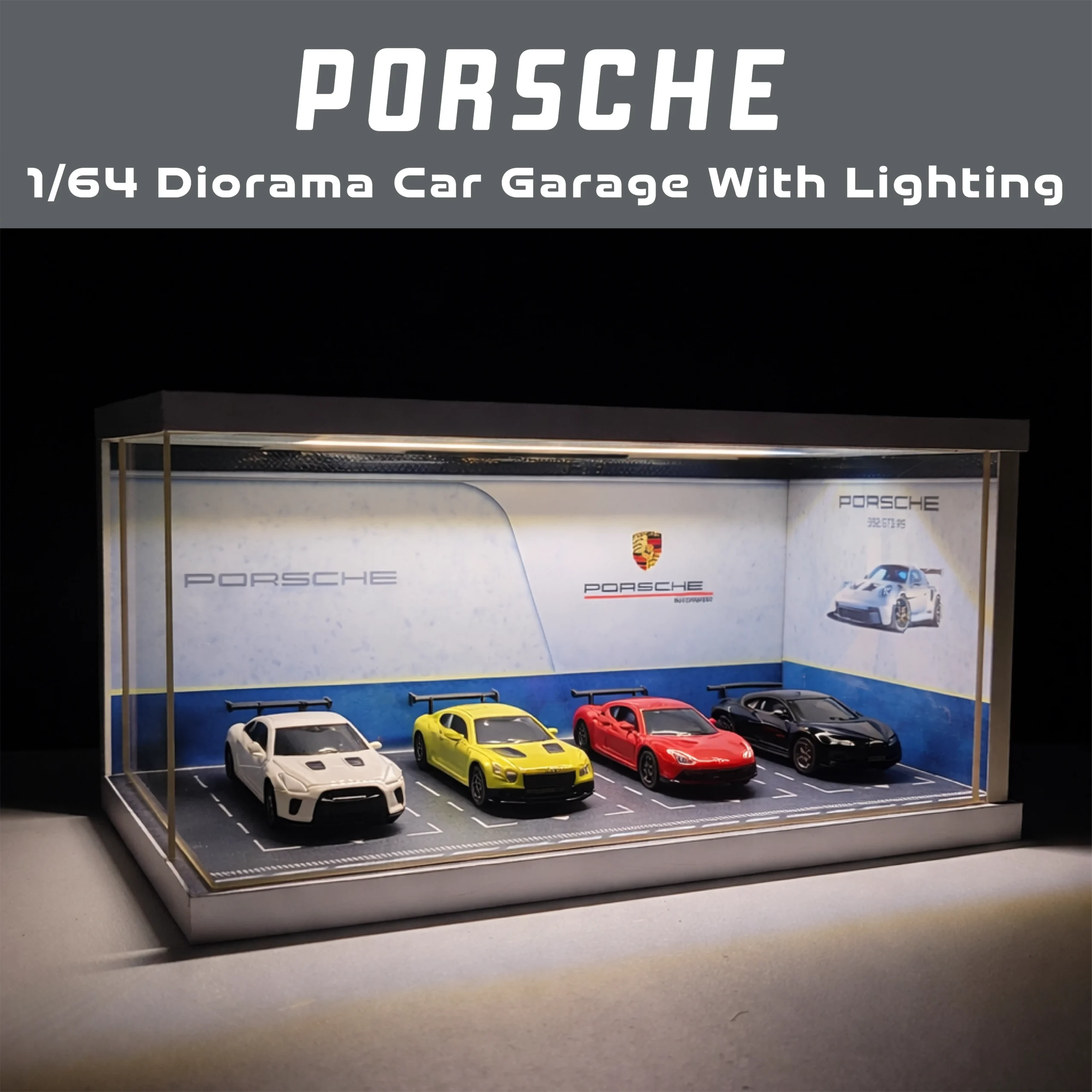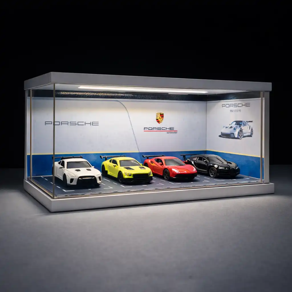 Porsche Diorama Car Garage – Premium Display Setup for Diecast With Tri-Color Lighting